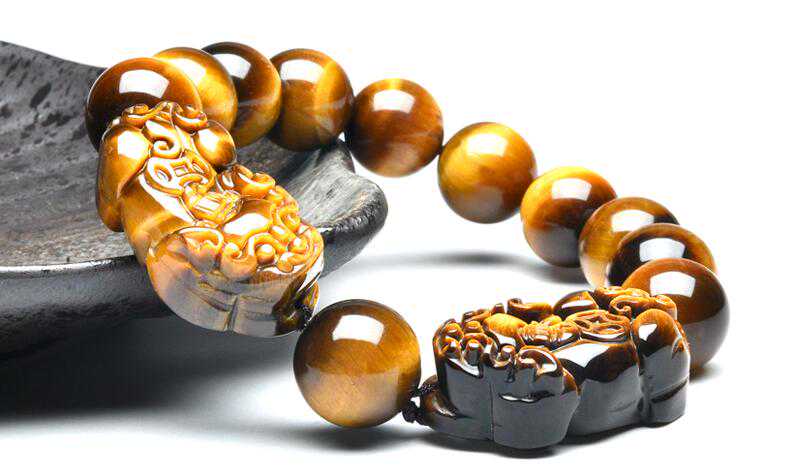 木变石和虎眼石都有相同之处,都有特殊的颜色:褐黄和蓝褐色,还有明显的微细纤维结构以及明亮的丝绢光泽,这是自然界中其他玉石所没有的。木变石和虎眼石(Tigereye)实际上都是一种“硅化石棉”,它是由岩石中蓝色或绿色纤维状石棉脉,经酸性热水溶液交代,石棉中的铁和镁析出,变成了纯SiO2集合体而形成的。这种硅化石棉如果成为一种玉料,则称之为广义的木变石。木变石的主要品种有两个:虎眼石与鹰睛石,其中黄褐色的木变石称虎晴石,蓝色木变石称鹰睛石。准确地说,木变石和虎眼石(鹰睛石)都是保留了石棉纤维结构的石英集合体。木变石和虎眼石属中档玉料,一般用做项链和玉器雕刻材料。评价与选购的依据:质地是否细腻,颜色淡雅程度以及块体大小情况。一般来说,无论是黄色还是红蓝色的木变石,只要质地细腻,无任何杂质,重量在10公斤以上的就可以算是上品了。虎眼石与鹰睛石均是木变石的变种。虎眼石是棕黄、黄褐色木变石琢磨成弧面型宝石后,所具有的猫眼效应而得名。虎眼石除黄色纤维外,尚有较多的蓝色和红色纤维,呈蓝、褐、红相间的斑杂,整体上以黄为主。虎眼石的石英纤维较木变石短,而且方向不规整,像斑纹一样的任意方向排列。一般情况下,虎眼石的块体较木变石大,木变石多是细脉体。鹰睛石是灰蓝色或暗灰蓝色的木变石琢磨成弧面型宝石后,所具有的猫眼效应类似“鹰眼”而得名。鹰睛石是原来的青石棉没有被石英代替,保持了原来青石棉的灰蓝色。