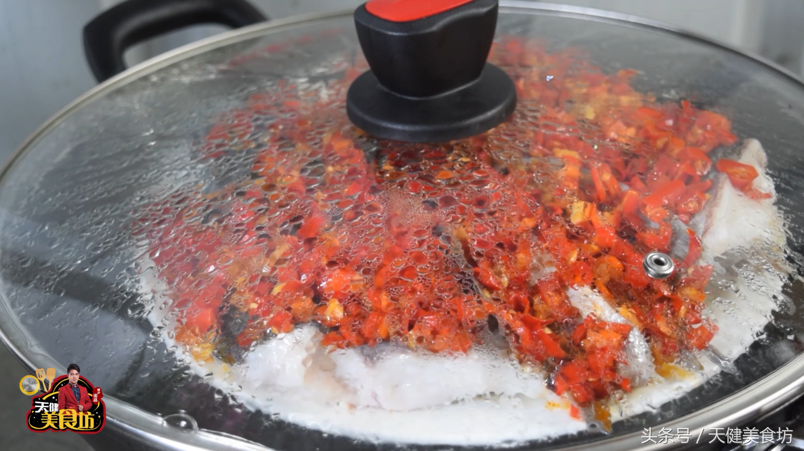 蒸约12分钟左右时,即可揭开锅盖,如果你不确定鱼头熟了没有的话,我教你一个方法测试一下,开盖后,拿一个筷子尖往鱼肉上戳下去,如果筷子能够很容易的戳穿鱼肉,就证明鱼蒸熟了,这时就可以起锅啦!