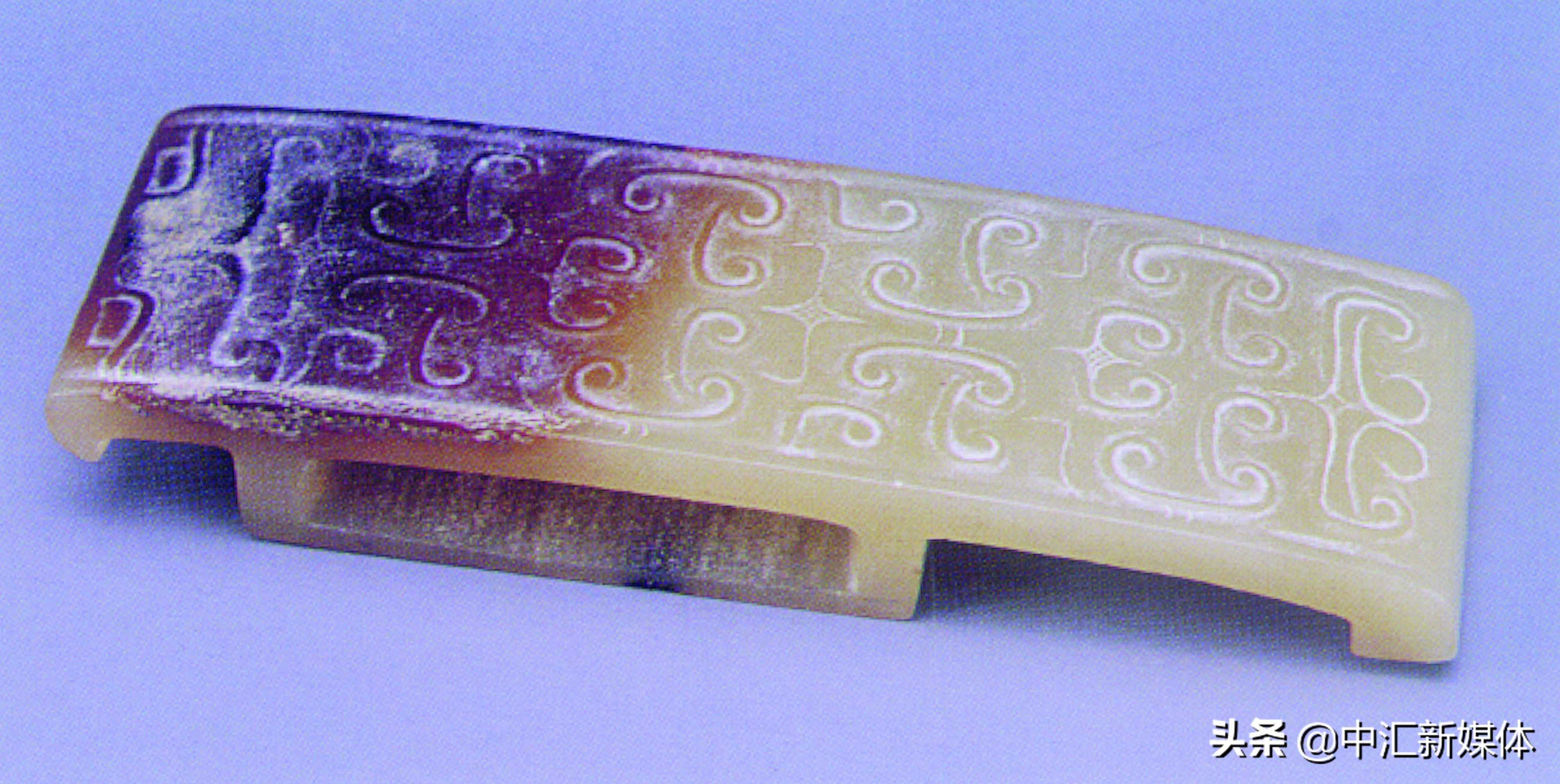 玉器上纹饰极为丰富精彩,所反映的内容也极其广泛,涵盖社会生活的方方面面。仅举两例:在礼器上,镌刻大面积图案,是三星堆玉器的特色。玉边璋上复杂、神秘的纹饰,被解读为蜀山祭祀图(也称蜀王祈子图)。但真正含义不得而之。