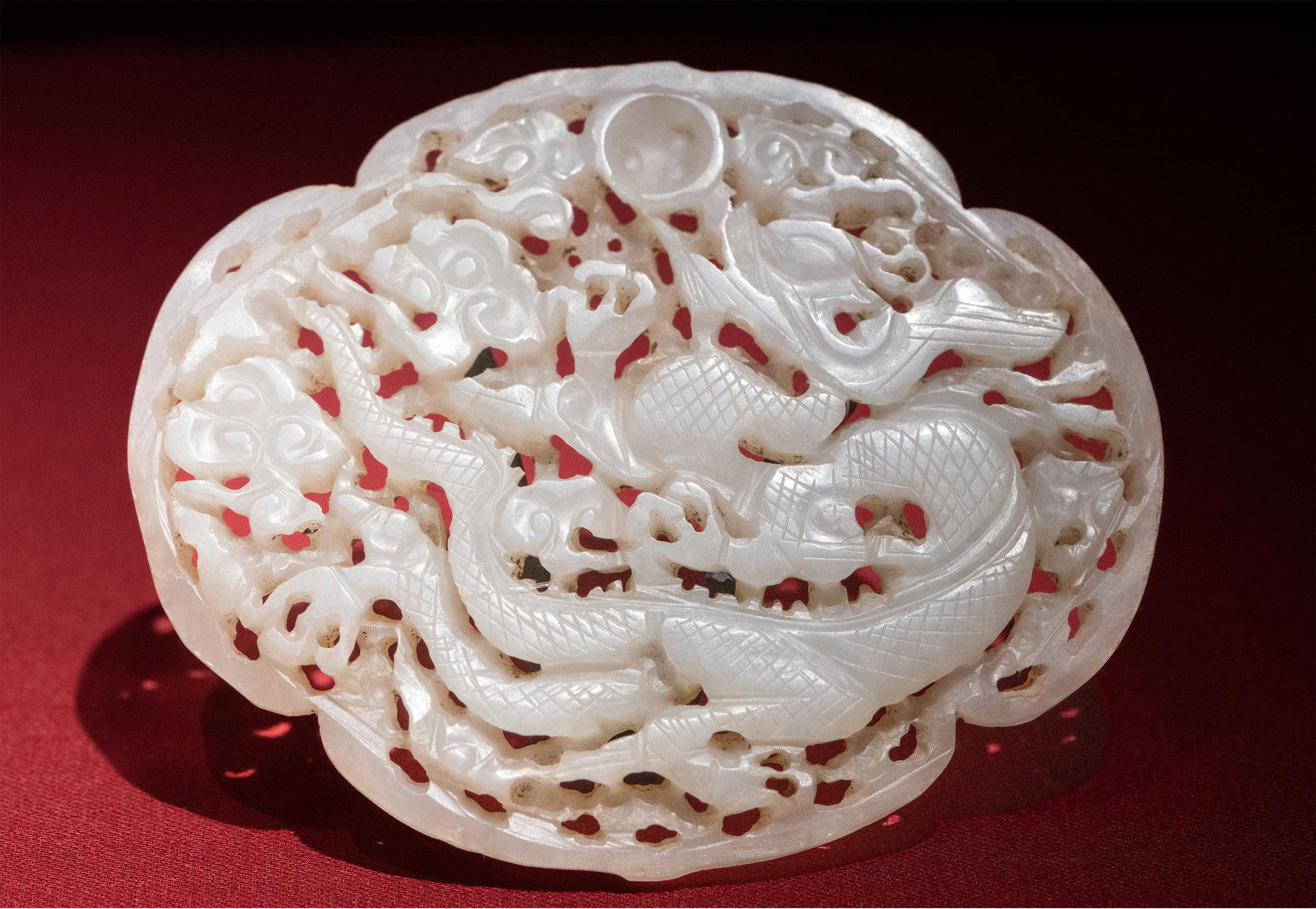 明晚期团龙玉带饰(明十三陵博物馆藏)