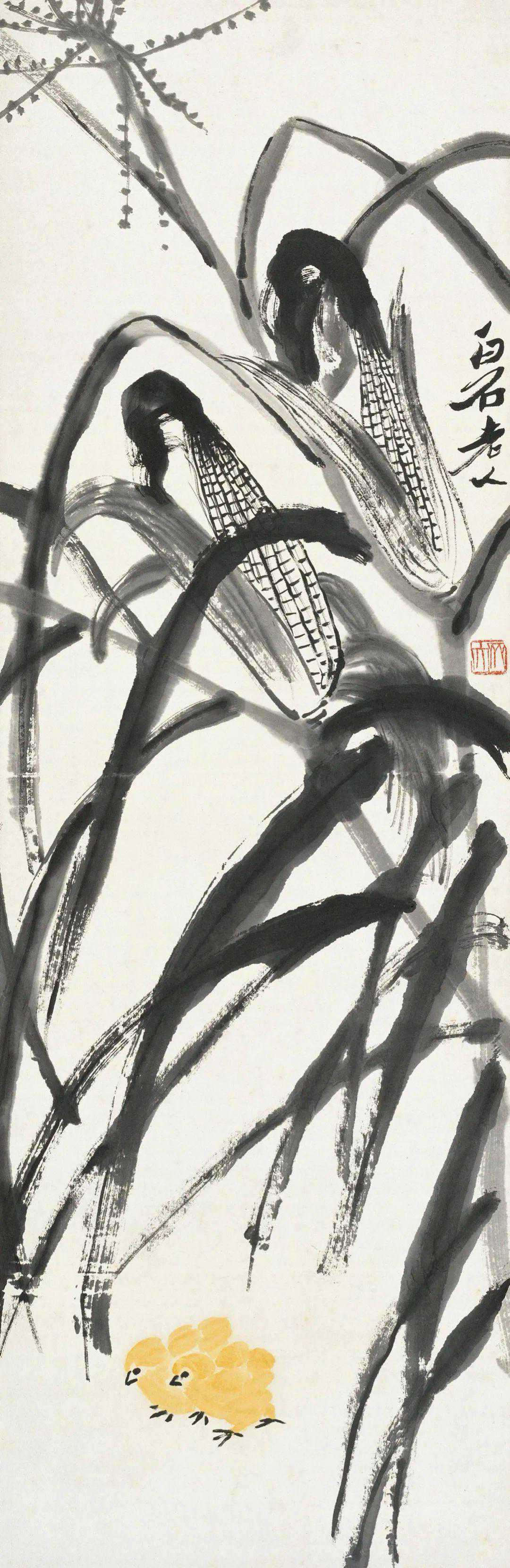 齐白石玉米雏鸡