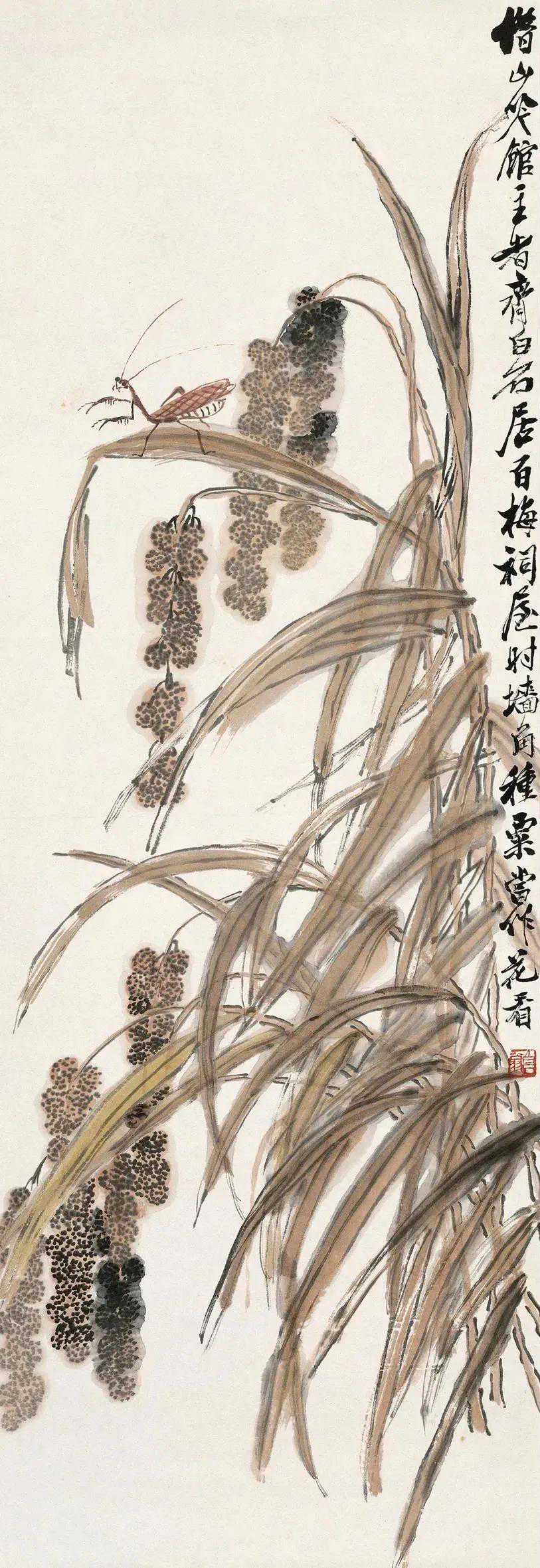 齐白石《谷穗螳螂》纸本设色