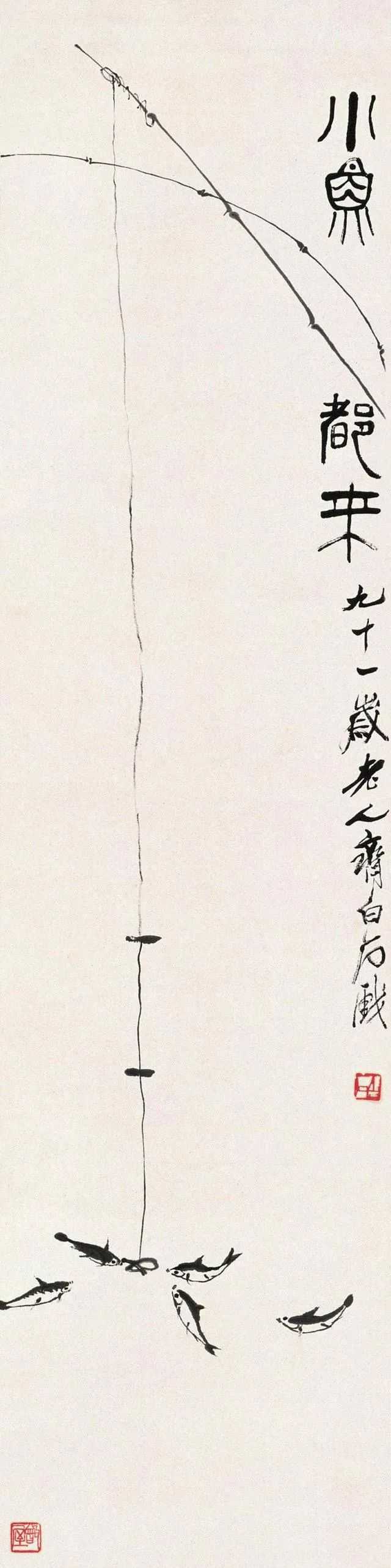 齐白石《小鱼都来》