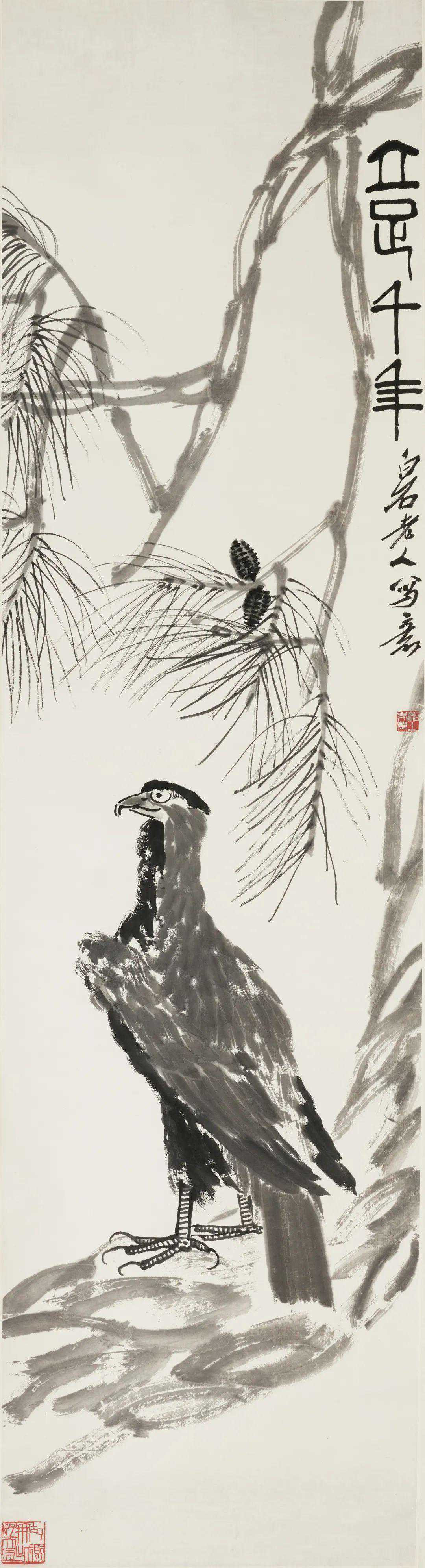此件《立足千年》,为齐白石松鹰题材中的佼佼者。
