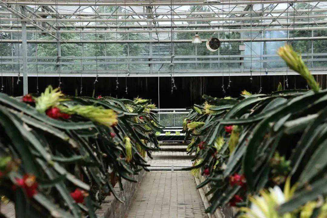 农业科技馆里种植着大片的火龙果和排列整齐的水培植物,还有其他各种果蔬,这里持续研究培育作物的最新品种,常看常新。