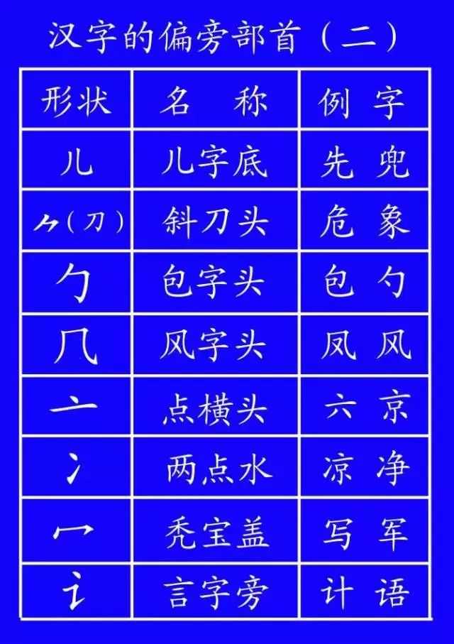 ①有钩——七、儿、几(冗、亢、机、秃、虎)。