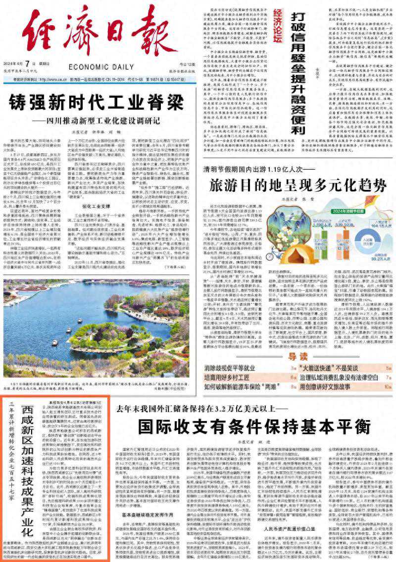 4月7日,头版刊发《西咸新区加速科技成果产业化》聚焦新区作为秦创原总窗口深掘科教资源优势,以科技创新激发产业创新奋力跑出新质生产力发展加速度。