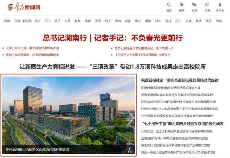 人民网客户端陕西频道新华网《秦创原赋能国家级新区这里科创力量澎湃》:秦创原建设启动及“三项改革”实施以来,累计超过3000名高校教师在秦创原总窗口创业。聚焦秦创原总窗口西咸新区,2023年新增科技成果......