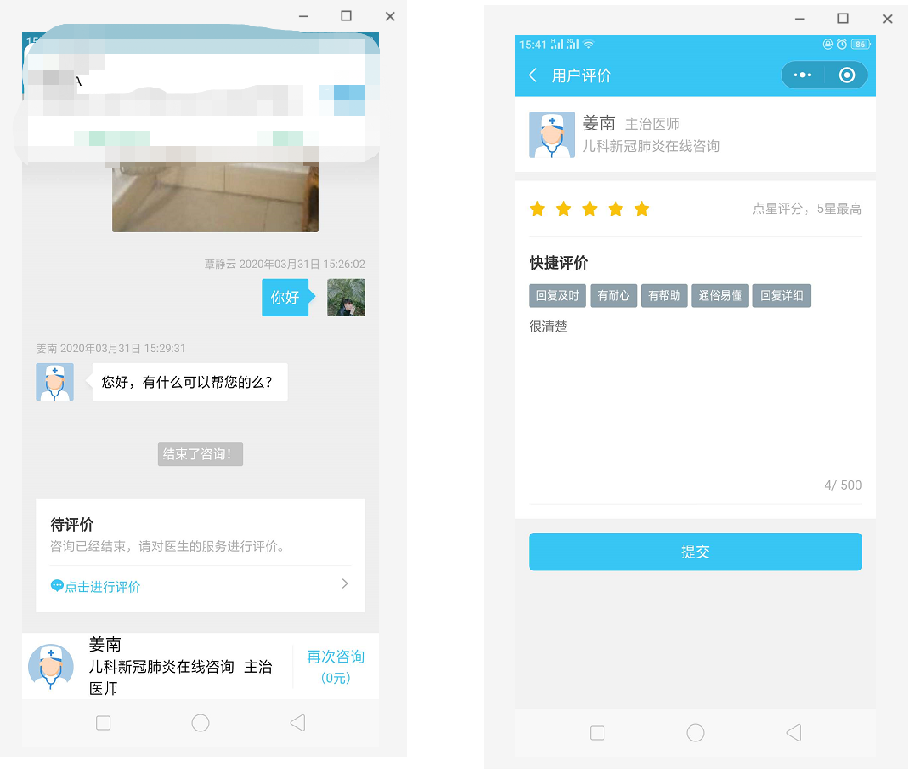 10、提交评价后,评价内容显示在医生详情栏