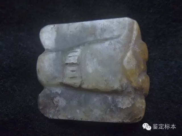 表面拋光痕嚴重的痕跡模糊,其它痕跡相對完整。綹裂的邊緣腐蝕形成塌陷,綹裂處邊緣自然的塌陷,是鑒定玉器真偽的重要依據。內部的白化體現了玉器腐蝕不均勻的規律。