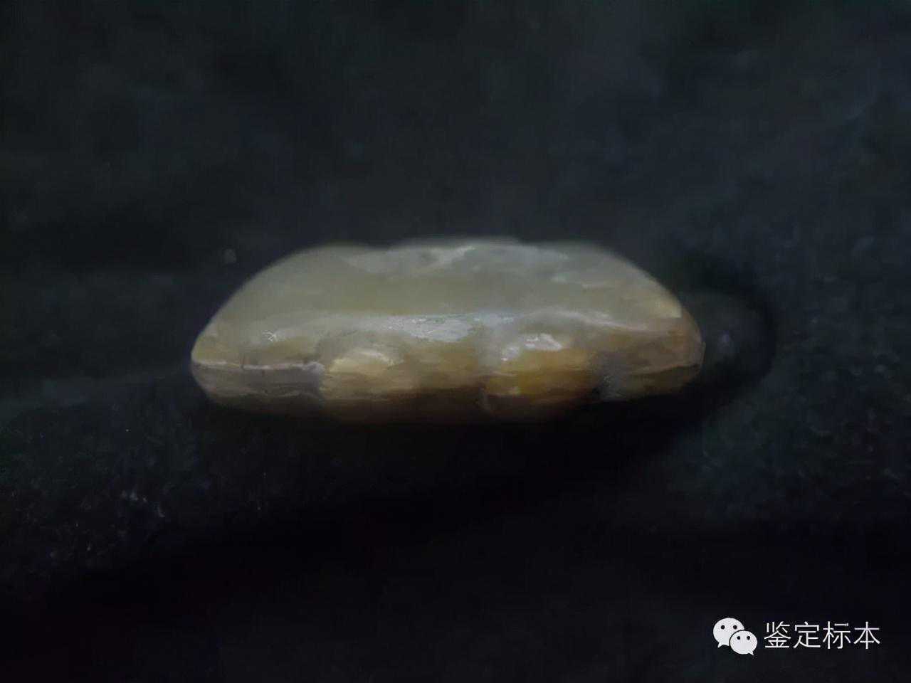 內部的白色,由外而內的黃色、褐色,深入玉質內部,分佈自然,非常內在,內部的玉質白化與透明成分交織自然,白化成分與表面黃褐色過渡自然,變化豐富。對沁色的把握,只能依賴長期的積累,這正是一個鑒定家應有的素養。