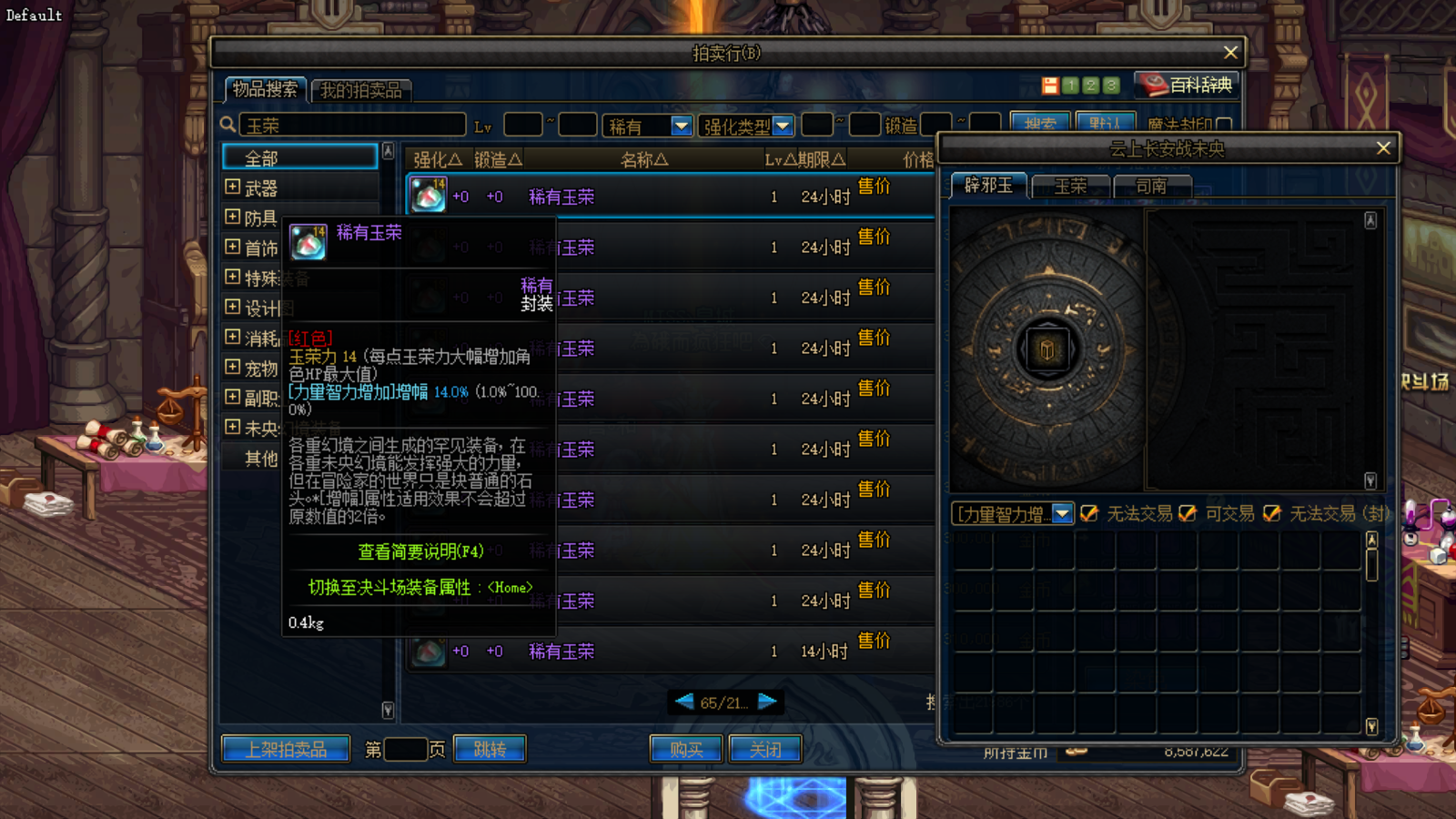专属副本的上线,为了花最少的疲劳刷到更高阶的副本,这部分玩家都需要在拍卖行购买到玉荣和司南,即使不想刷这副本的玩家也想要在拍卖行购买到心仪的辟邪玉,但是地下城的拍卖行并没有专属的筛选功能,这就导致大家搜索一个玉荣就出现上千页的商品,想要找到自己需要的东西可以说翻页到手酸眼疼,那么有没有什么好的小技巧呢?