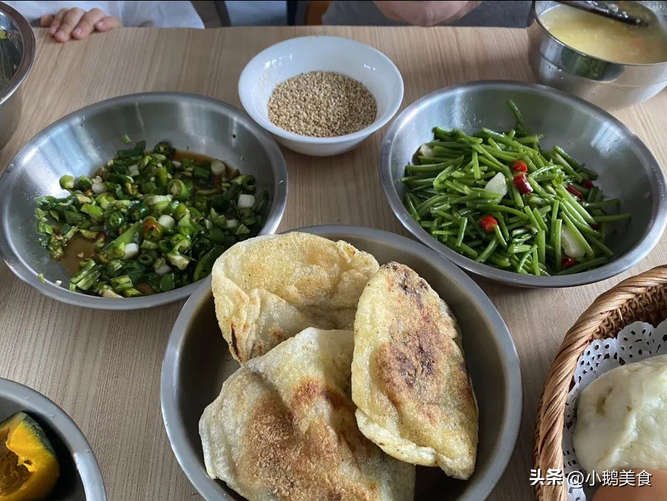 因为包子和糍粑都是有馅的,所以菜很简单,凉拌大葱青椒和芝麻盐算咸菜,就炒了一盘炒红薯梗,红薯叶营养价值极高,被称为“蔬菜皇后”、“长寿蔬菜”,对视力、皮肤、便秘、血压等都有好处,所以婆婆种了一片红薯叶,买着吃一斤要几块钱呢。不过很多人接受不了,说这是猪吃的的东西,说我家吃猪食。其实猪吃的东西又咋了?咱们不是还要吃猪吗?