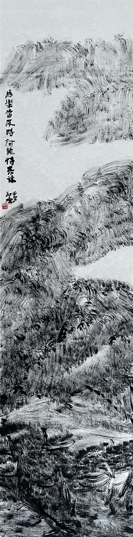 无论从创作实践,还是从赏画者体验的角度观察,这都像是一场巨大的变革,山雨欲来风满楼。在这股潮流的推动下,国画有望呈现一种全新的样貌,凤凰涅槃,再迎新生。此后画家或不再靠单一的线条去写,而以线阵来结构一片迷人的灰。墨分五色也不再单以笔墨的浓淡来实现,而可以在这片迷人的灰里进行五色的细分。这种笔法上的创新,不是靠加法,而是靠减法取得,从这个意义上讲是一种返璞归真。在这个新的、线阵灰的平台上,画家的功力或将经受新一轮的严酷考验。而于赏画者而言,或已无需再墨守成规,尽可畅享迷人的一片灰带来的愉悦的审美体验,发现原本应有、不曾得见的美。
