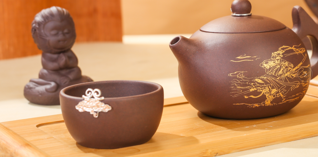 这款《齐天大圣》紫砂镶银套装选用的就是陶都宜兴的紫砂泥料。