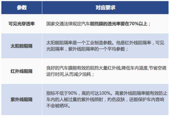 相信大家都是实在人,一聊怎么选购,就会说买什么牌子的,有没有什么标准。其实国家除了「透光率」这个硬指标,在其他方面都没有定什么指标,所以,大家在车膜商品详情页中看到的其他指标,都可以理解为行业的『潜规则指标』。