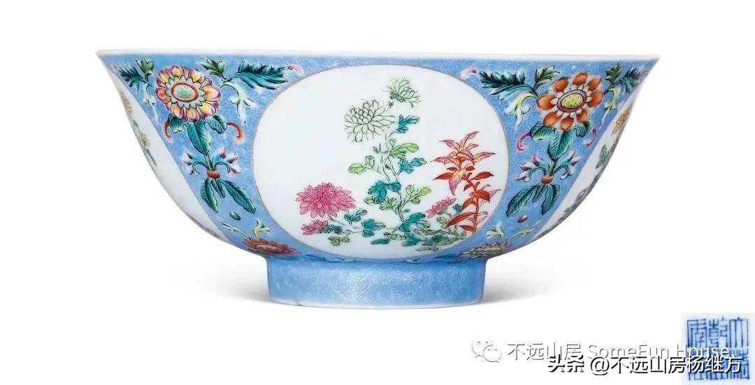 2021保利厦门秋拍清乾隆蓝地轧道粉彩开光重阳菊花纹节令膳碗