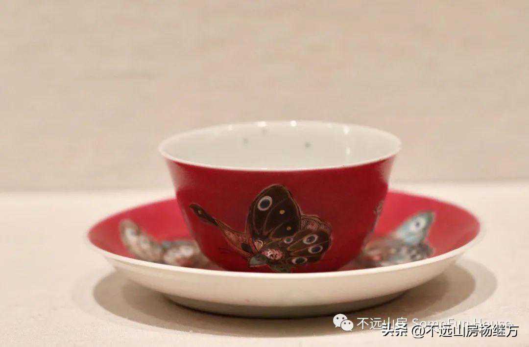 胭脂紫地粉彩蝴蝶纹杯盏,乾隆时期的外销精品、大都会博物馆藏