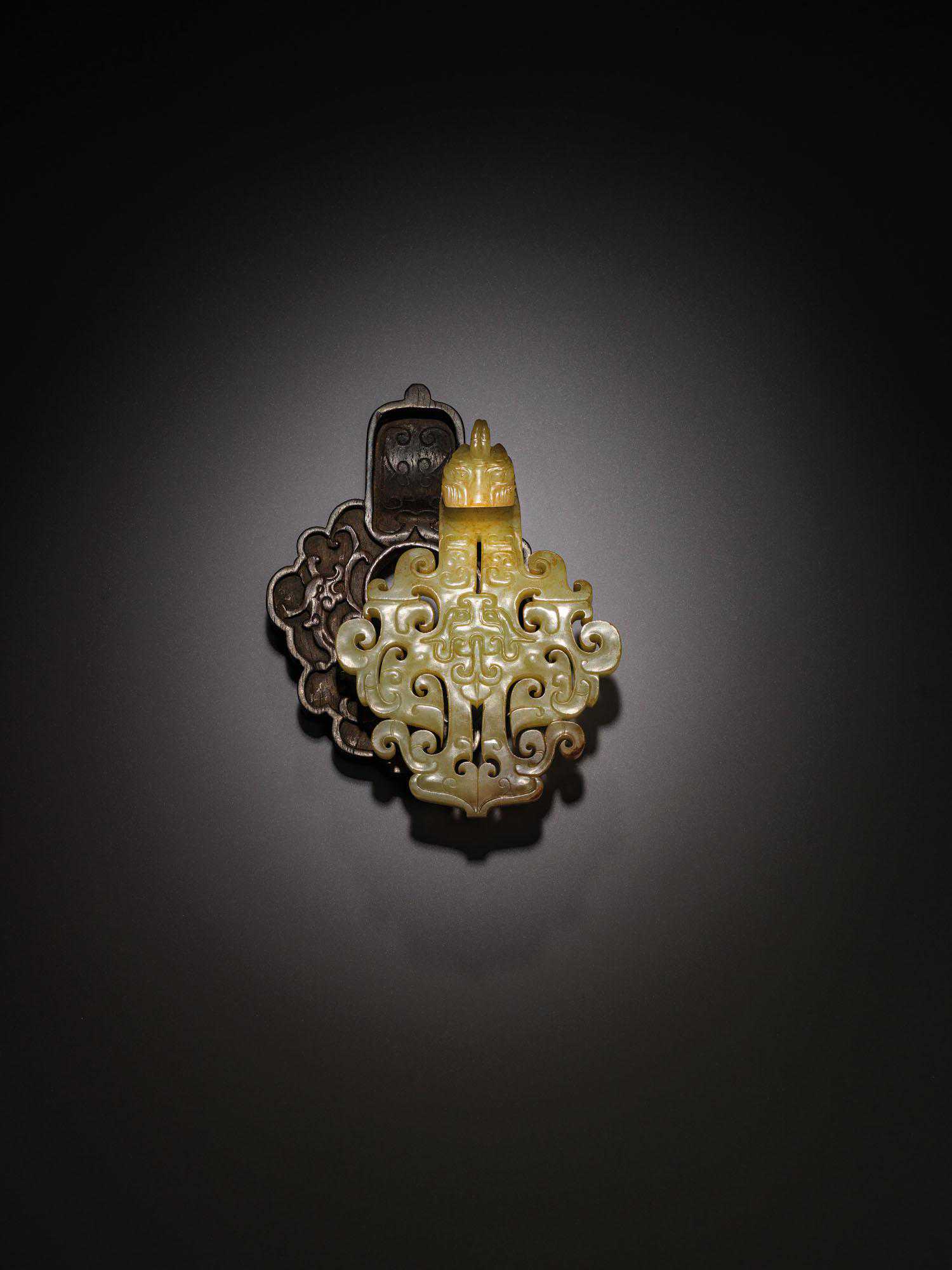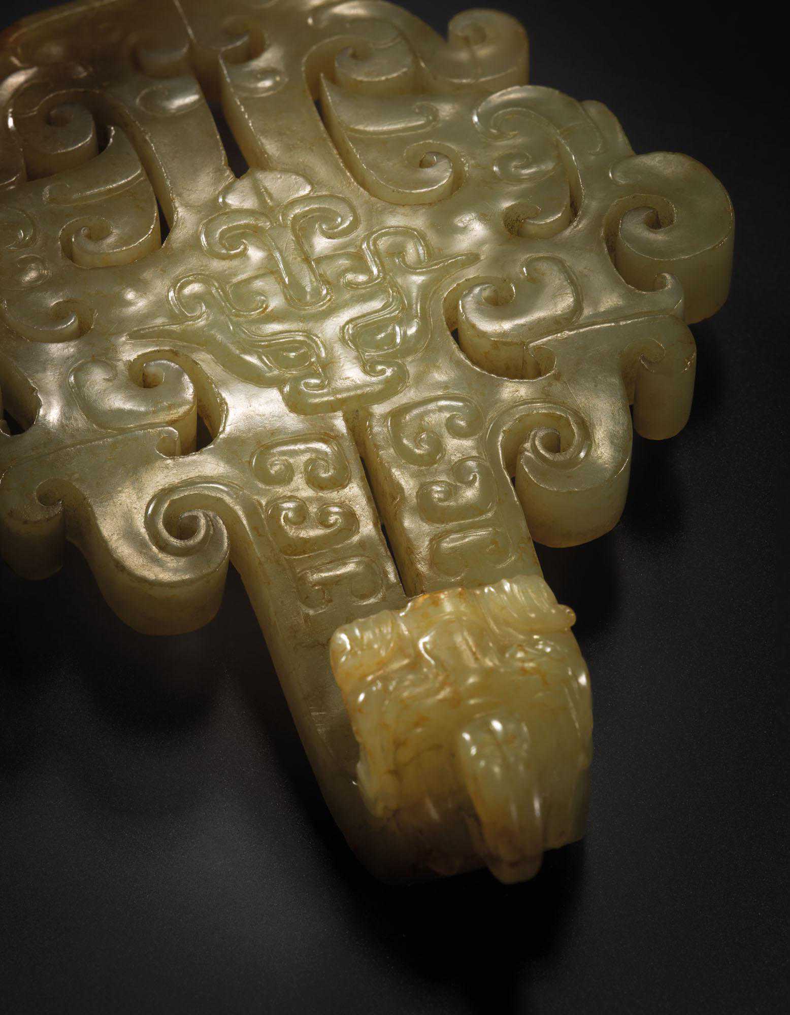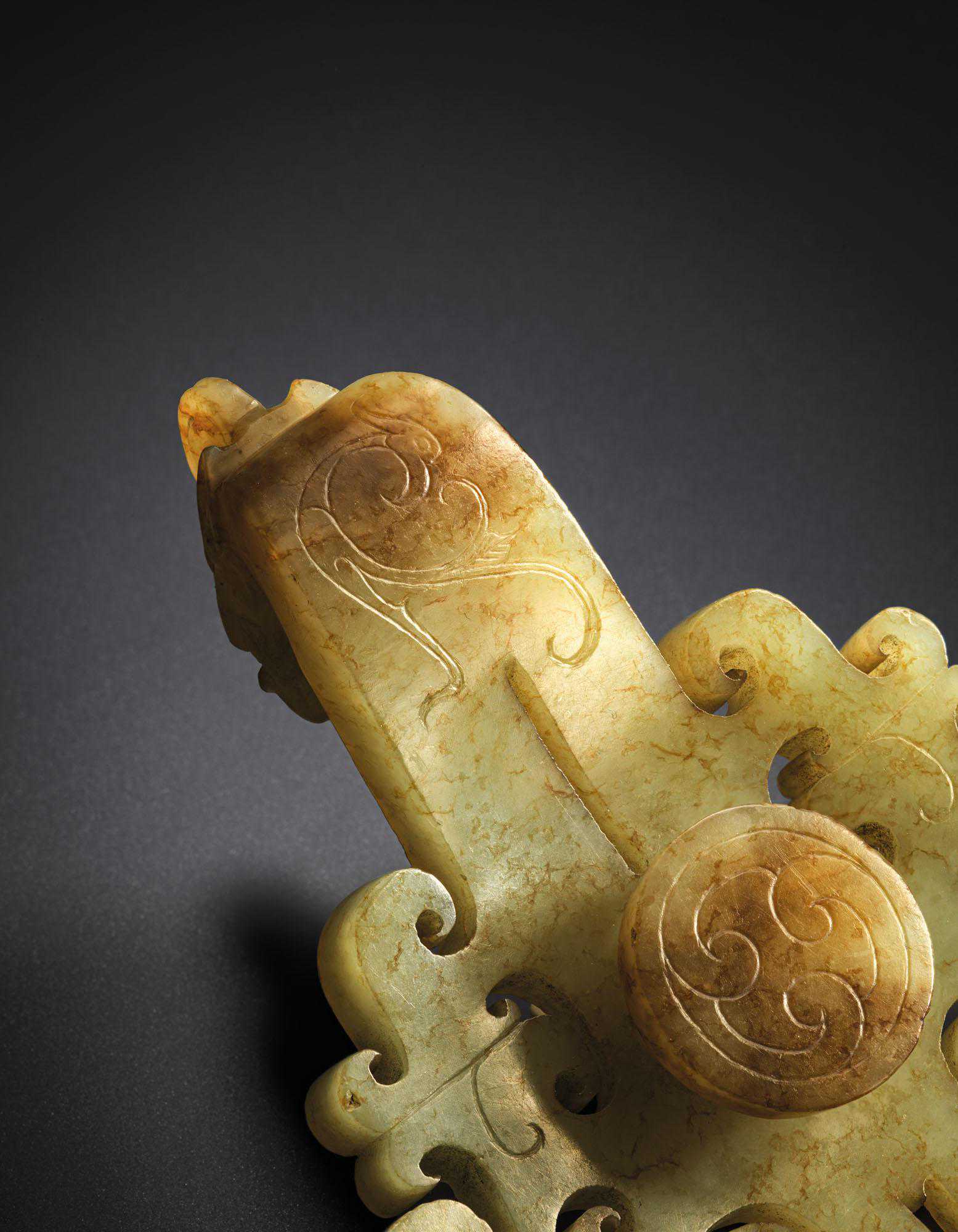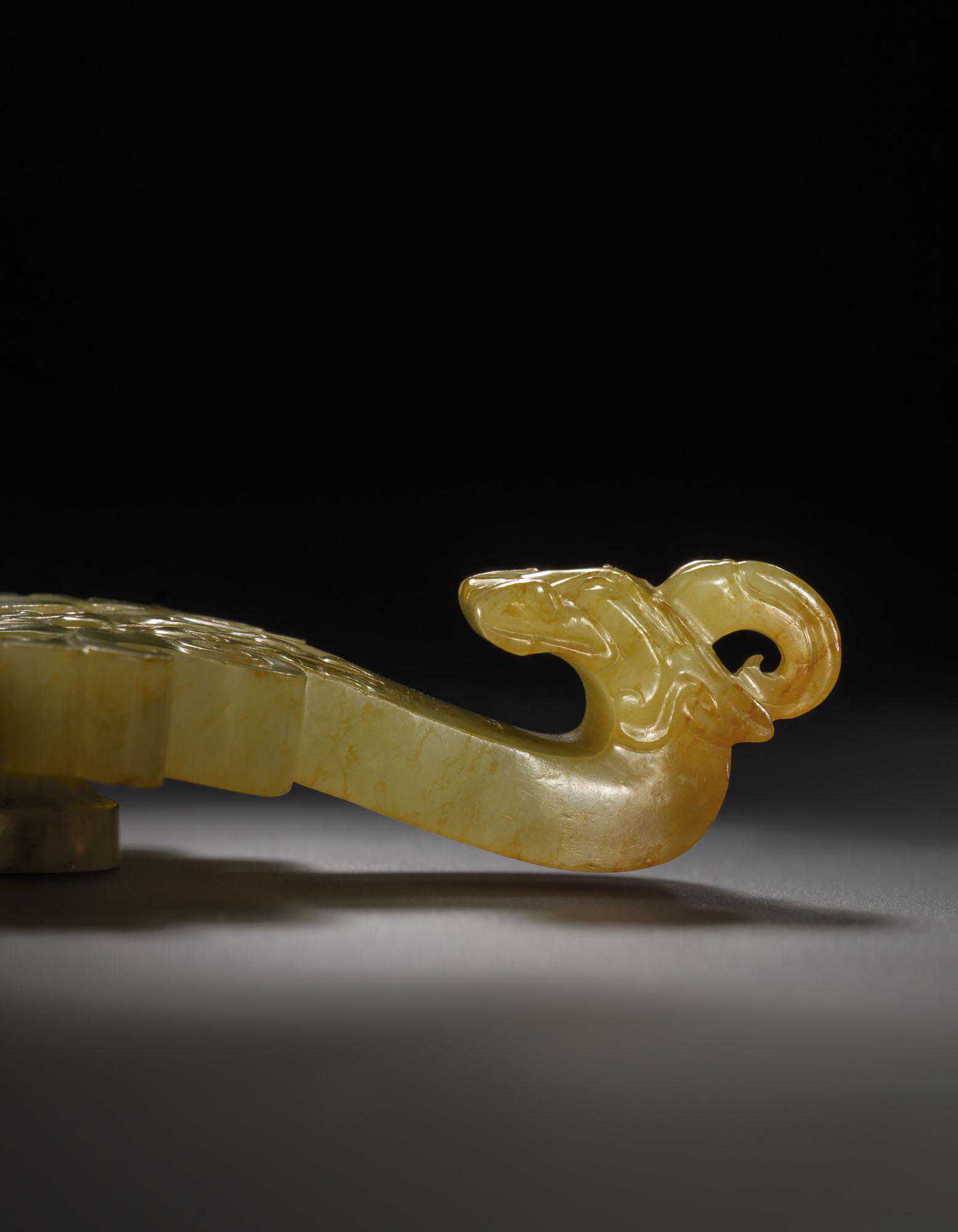 他是一件“西汉镂雕兽首黄玉带钩”,成交价是2,902,500英镑,几乎是她的一倍。