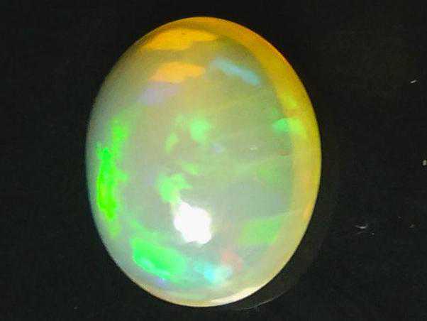 2.变彩:整个欧泊应变彩均匀,没有无色的死角,且变彩中颜色应齐全,即出现整个可见光光谱中的所有颜色(红、橙、黄、绿、蓝等)。色斑分布均匀,色斑愈大愈好。片状、丝状、点状搭配适宜。