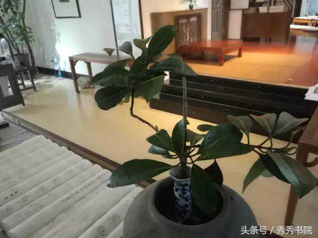 秀秀老师进门瞥见迎面土陶小罐里那一枝插瓶绿叶,不言声儿忽然拿壶取水,或喷或淋,或左右端详,“谁动了这一瓶?怎么似乎比昨儿个好看了些子?”原来是中间的一段“徒有空枝不见叶”,如此竟凭空显出几分超逸的姿态来。秀秀老师是此中好手,自是一望而知。