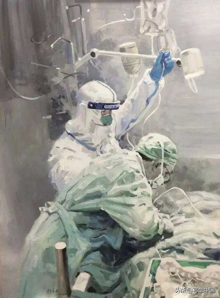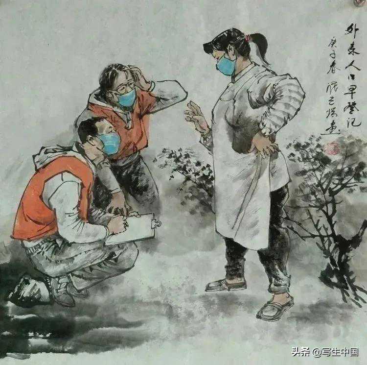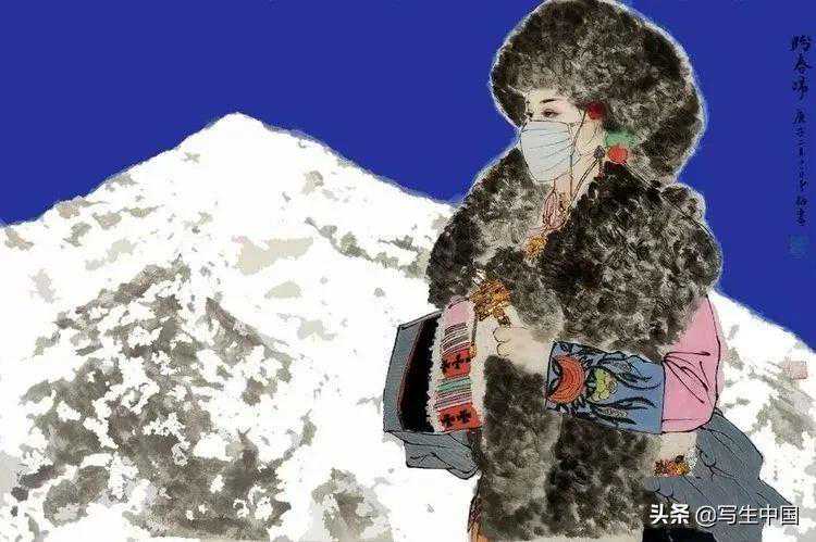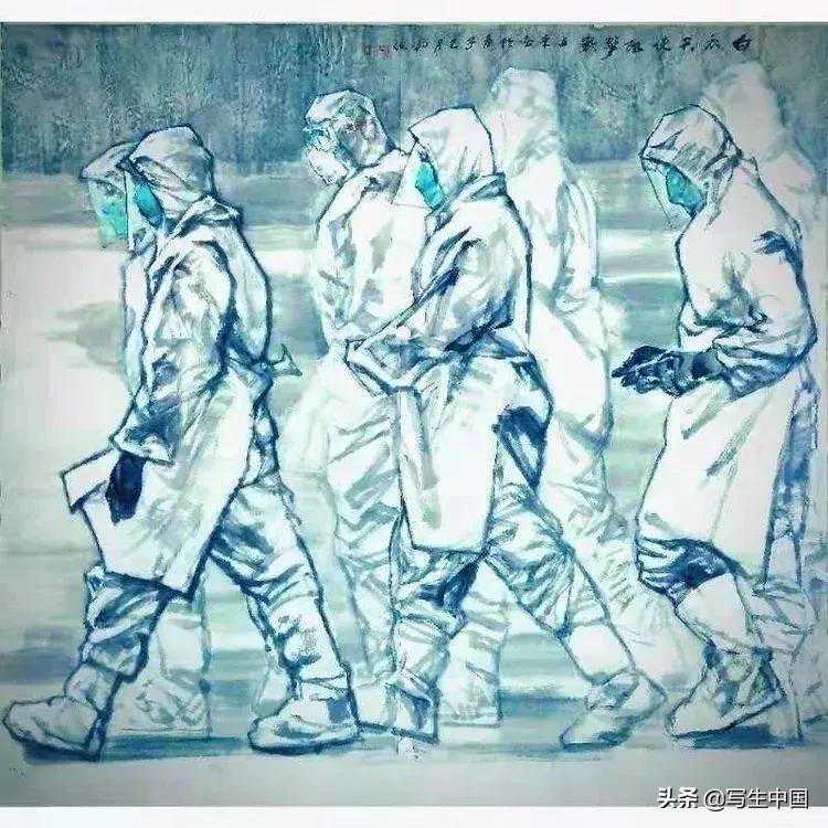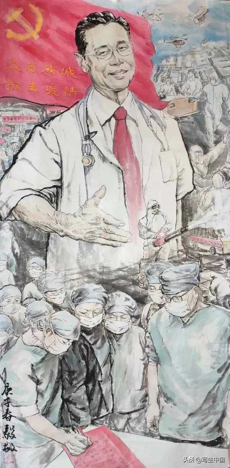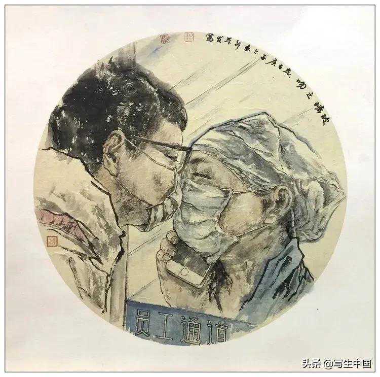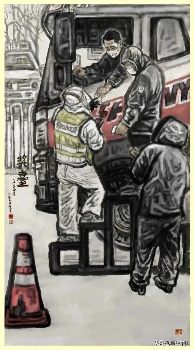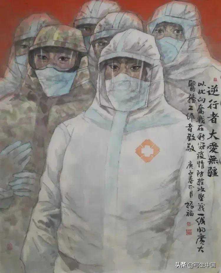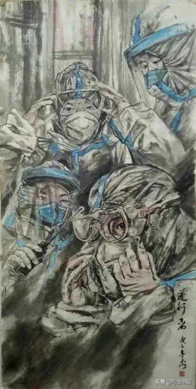 《抗疫逆行者》中国画文麒