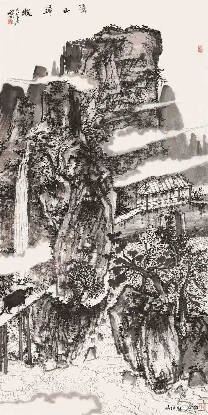 《溪山归牧》136×68cm何加林