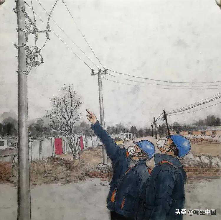 《战疫情保供电》中国画翟立军