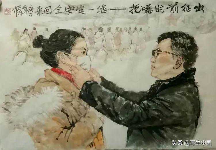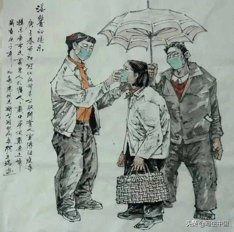 《戴口罩·温馨提示》中国画罗光瑞