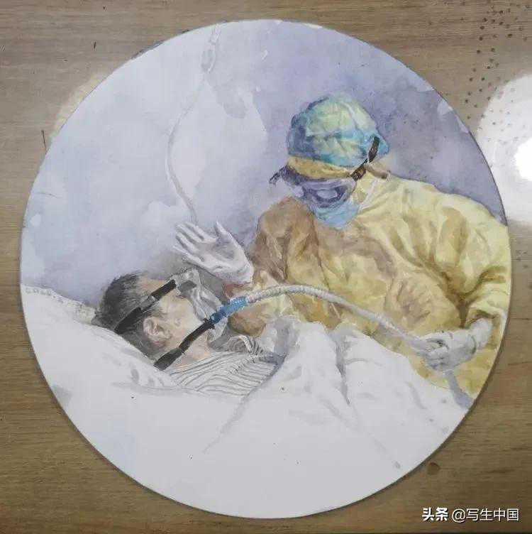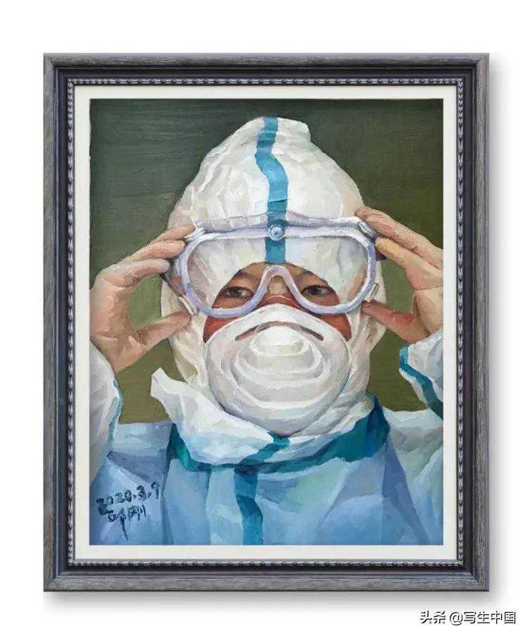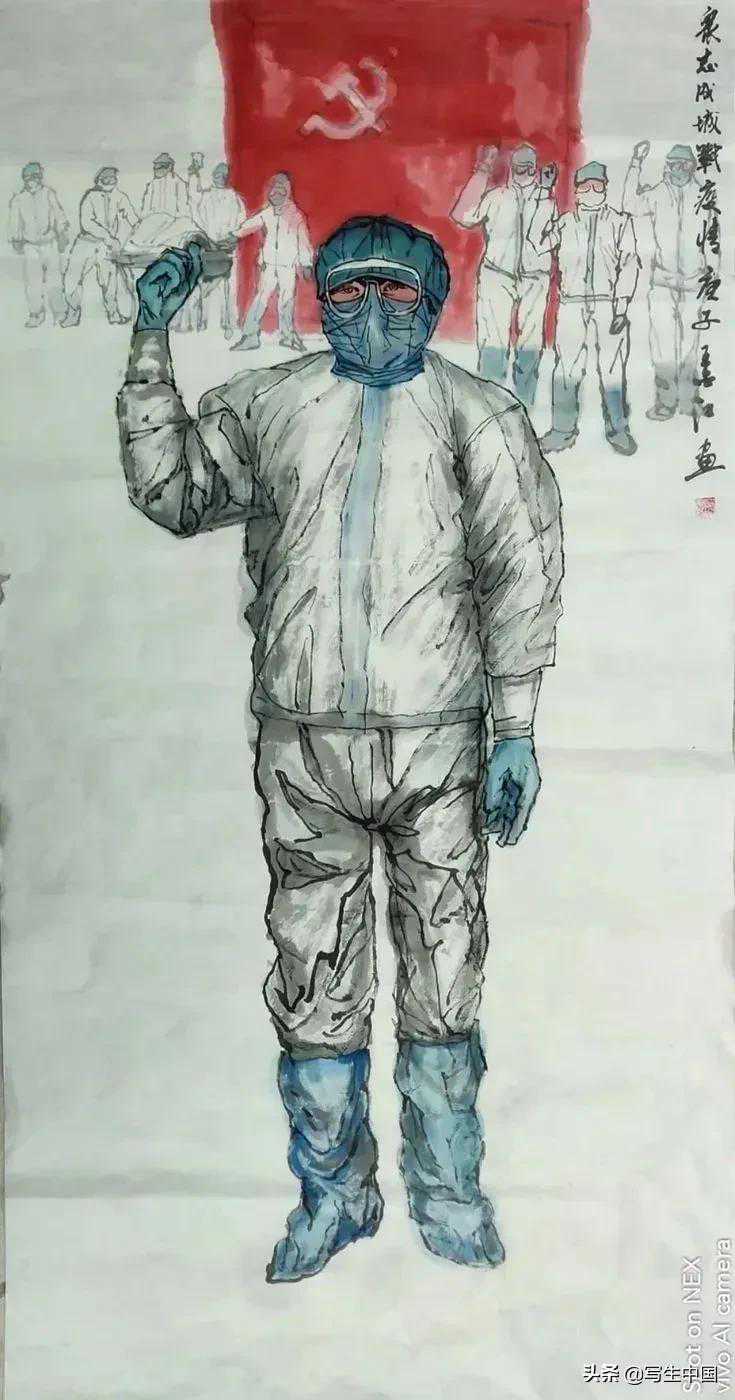 《拿画笔的抗疫战士》中国画蒋洪亮