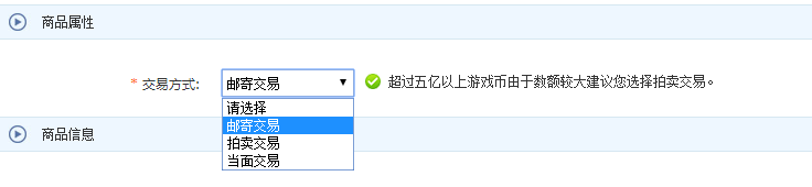交易方式分为担保交易、寄售交易,个人推荐担保交易;之后选择自己所对应的大区就可以继续发布。