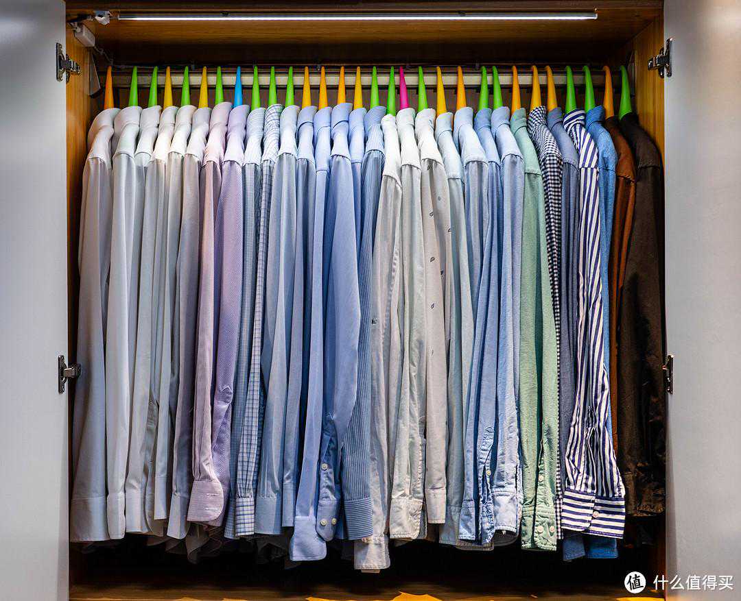 衣服悬挂保存我的衣服除了运动穿的外,所有的衬衫、POLO、西裤包括T恤都是悬挂保存的,好处是能让衣服一直保持平整,衣服的形状也不会因为挤压变形,拿出来就可以直接穿。要实现这个,新房子定制衣柜的时候,就要充分考虑好悬挂的空间,不然会没那么多位置。