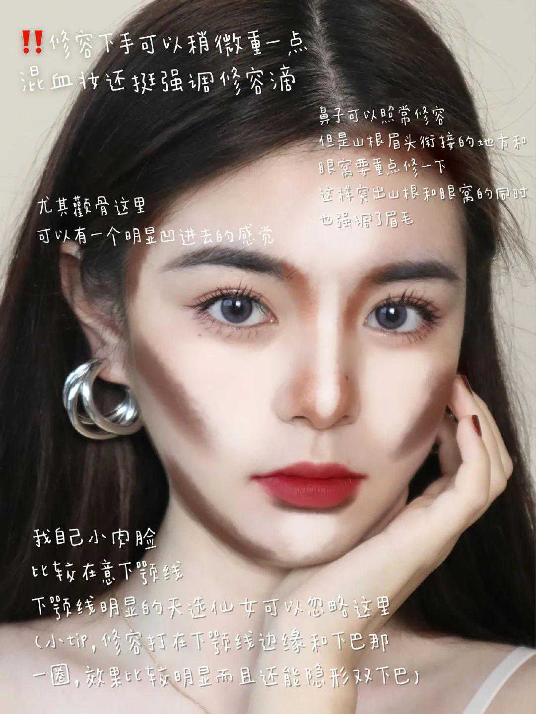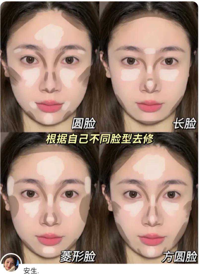 不同脸型,打修容的部位不一样