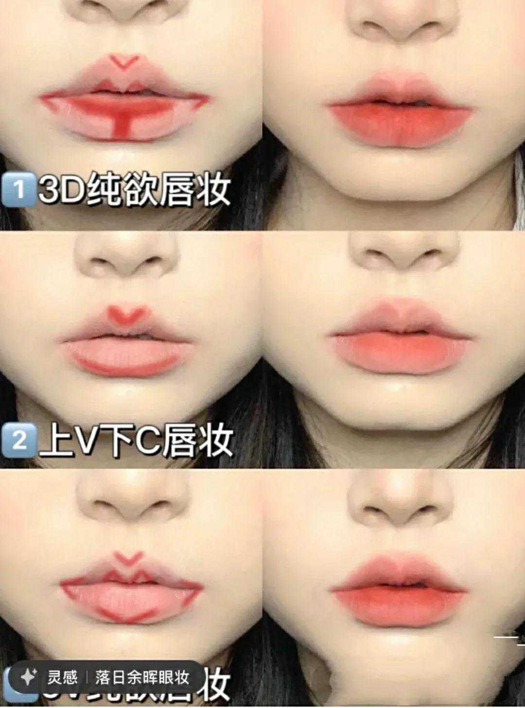 手残女生可以参考下图的唇妆方法