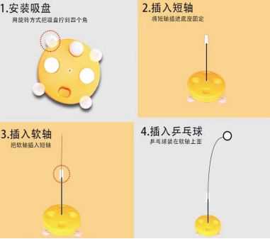 道具:吸盘、软轴、短轴、乒乓球、乒乓球拍