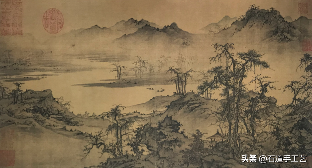 马远,南宋光宗、宁宗朝画院画家。这幅自然人间浑然一体,堂内侍宴,阶下执灯起舞,屋外丛梅、远山呈现于苍茫夜幕之中。中国水墨画写实在此得到深化,表现自然诗情画意。是南宋时代的代表。