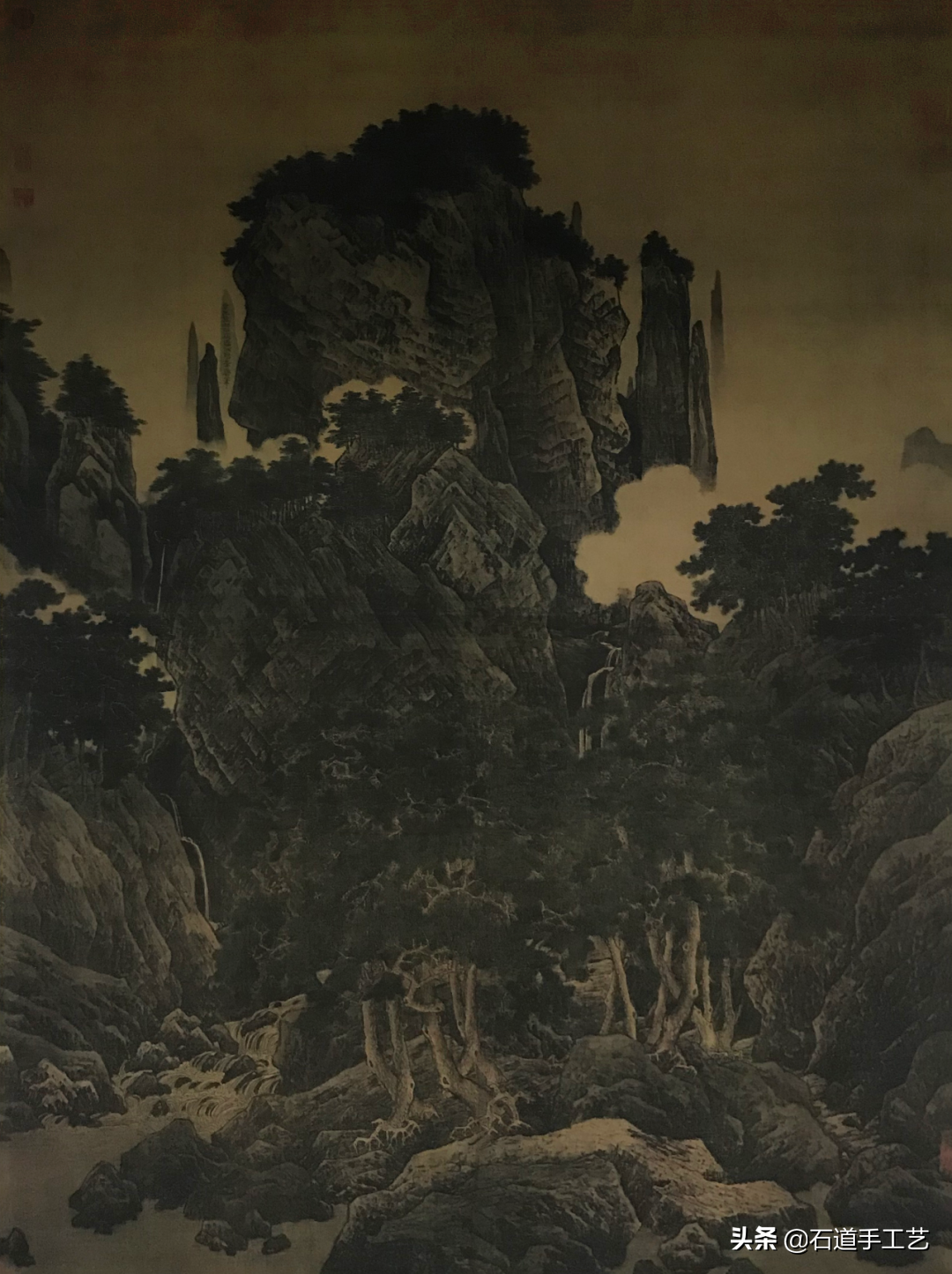 李唐(1049-1130),河阳人。字晞古。山水初法唐代李思训,其后变化自成一格。这幅气势雄浑,令人神惊目眩,为李唐七十六岁时所画。是传世李画中构图、笔墨、设色均极精之品。