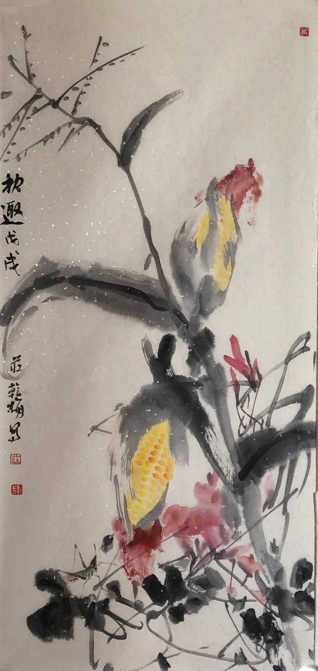 庄乾梅的写意花鸟画洋溢着细腻、包容的女性气息,她的作品画面饱满、舒展,用笔干脆、娴熟,色墨交融,既有笔墨的趣味,又有民俗的风味,雅俗共赏,透露出朴实端庄的气象,吐露着大自然的清香。