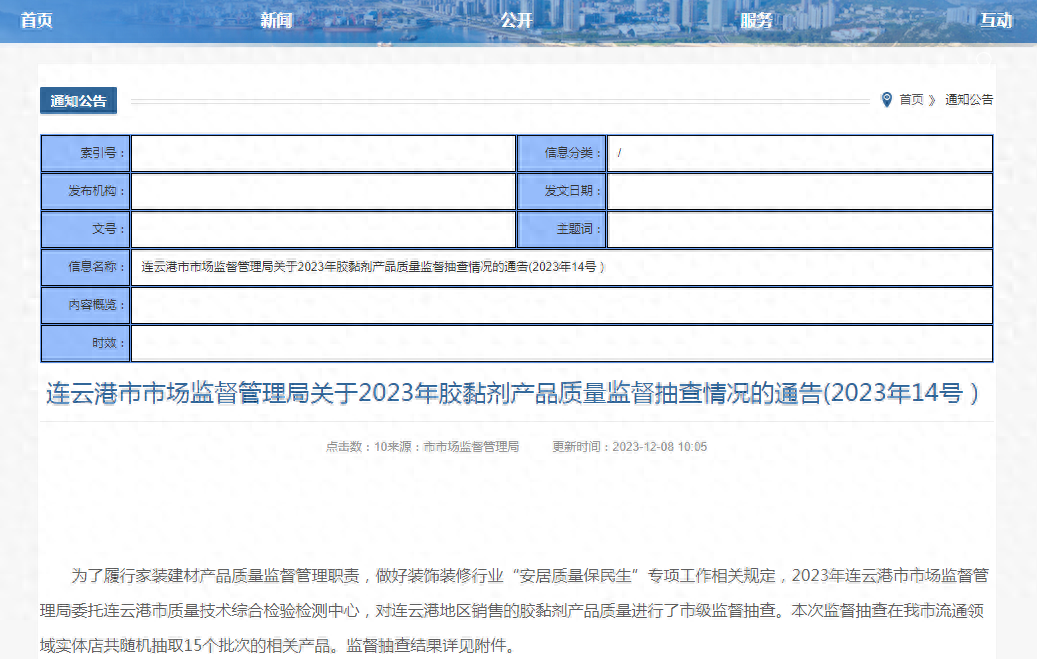 连云港市市场监督管理局关于2023年胶黏剂产品质量监督抽查情况的通告(2023年14号)