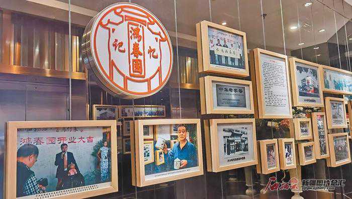 益天洋酒店二楼的记忆鸿春园餐厅背景墙上展出鸿春园历史资料(2021年11月22日摄)。石榴云/记者于江艳摄(资料图)