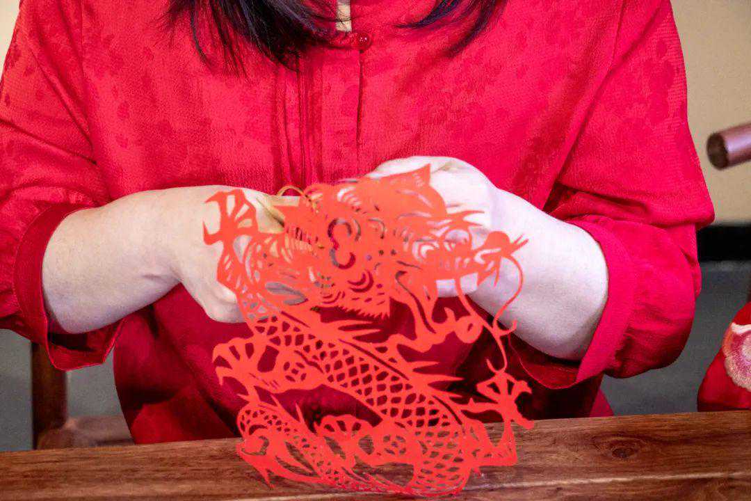 红色的剪纸,吉祥的象征!龙年就要剪“龙”,走进烟台剪纸馆,在非遗传承人老师的指导下,左一剪,右一剪,伴随着沙沙的剪纸声,一条生动的“龙”就剪了出来。