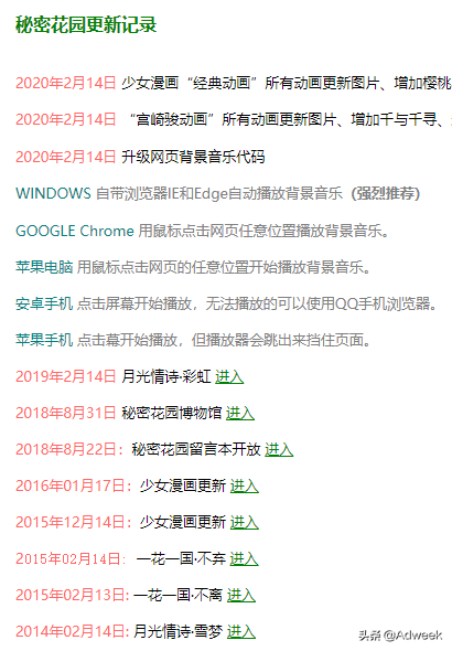 几乎每年2月14日,旖旎都会悄悄更新网站,今年2月14日依然做了大量更新。至今网友们仍不知道旖旎是何许人,不过这些都不重要,这个网站已成为一代人的心灵净土,与其翻墙动土寻根问底,不如让它永远神秘下去,不被外界打扰。