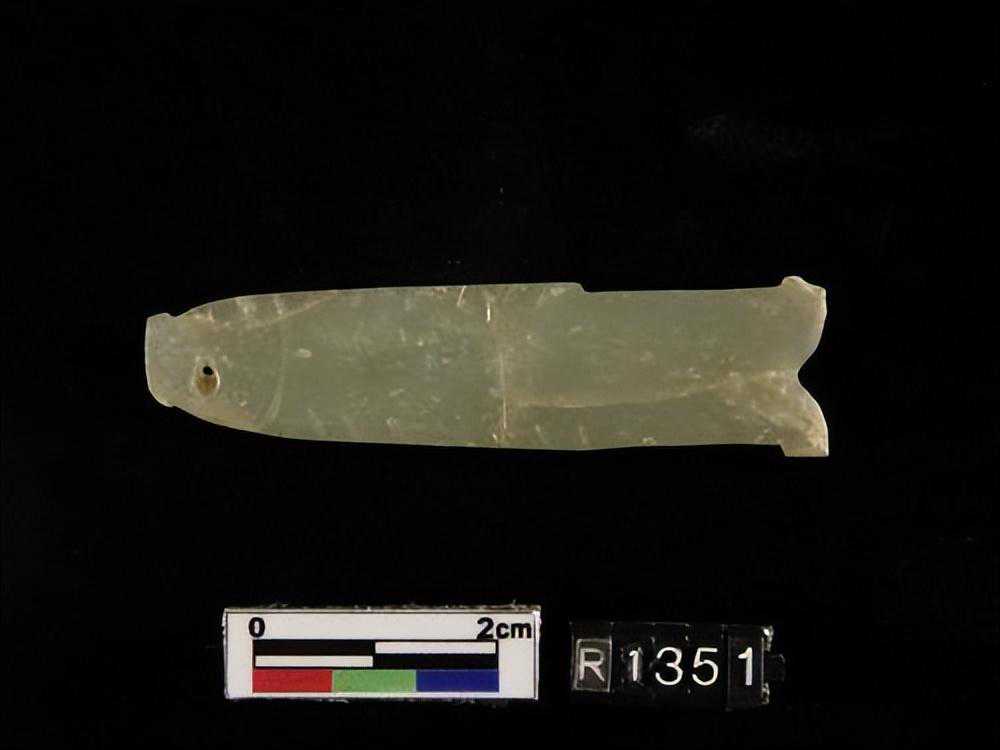 1443墓。。。玉鱼璜,目為一小孔,背腹鰭均為細小之刻文,尾薄如刀刃。。。