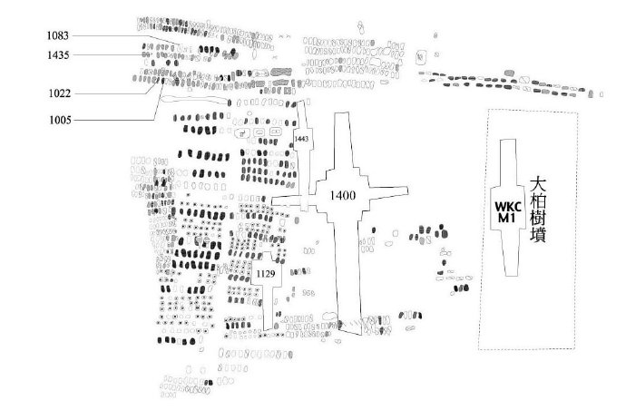注:1002墓为西北冈第一次、第二次两次发掘所挖,是西北冈诸墓地中最先完成的大墓。发掘至坑底离地面11公尺深时遇地下水面,只能将遗物起出并找到坑底,并确定有木质墓室的存在,但现象图、观察、图像等记录手续皆难以进行。