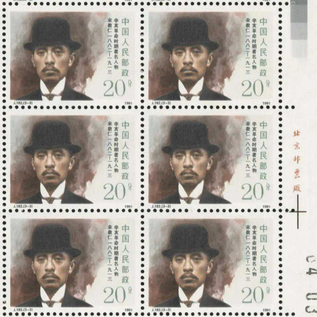 J182辛亥(辛亥革命时期著名人物)邮票发行日期:1991.10.10。影写版。P11*11.5。40mm*30mm。40(5*8)。[G]。王书朋。北京邮票厂。这套纪念邮票是纪念辛亥革命80周年于1......