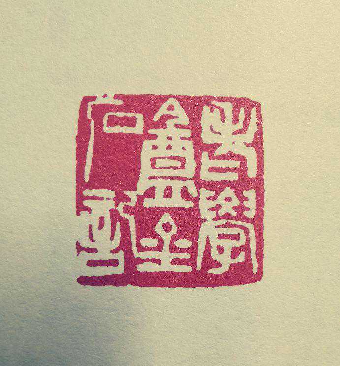 同时,在章法上,石字重心上提,其下大片留红,以高山坠石之势和金字上面的留红、整个印底的留红相呼应,使左右两部分于不平衡中取得平衡。