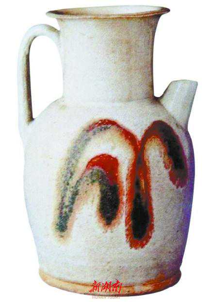 长沙窑白釉红绿彩壶。