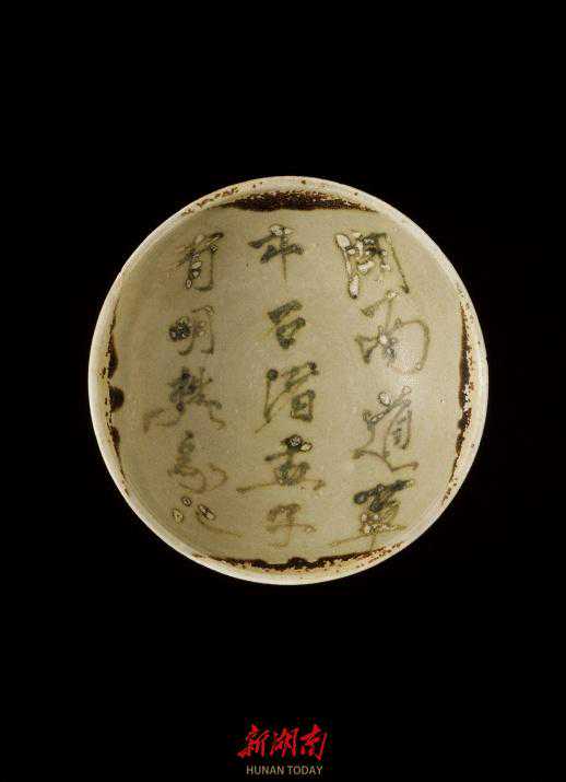 两件青釉褐斑彩绘碗尤其引人瞩目,一件在碗心用彩料书“湖南道草市石渚盂子有明樊家记”,另一件外壁刻有“宝历二年七月十六日”(826年)。张兴国解释说:“前者明确指示了瓷碗的作坊产地,后者标明瓷碗的制作时间。”