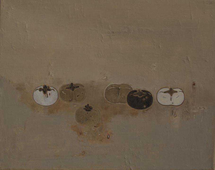 谈及喜欢画果瓜蔬菜的原因,戴家峰坦言,随着年岁渐长,越来越感受到人真正的幸福,是能每日享用来自大地的食物,简单平凡。“菜场里有能够做成温暖饭菜的原料,也有热闹市井中普通人的勤劳和聪慧,那里让我见证什么是真正的生活。”因此在日常创作中,他将目光投放到生活中被忽略的身边风景之上。香蕉、橘子、柿子、南瓜质朴的笔触之下,藏着他对已逝时光的浪漫思绪,又包裹着溢于言表的生命感怀与欣喜。让观众不自觉为之却步,流连于他笔下可爱温暖的瓜果蔬菜。“对于画家来说,只要我们还拿得动笔,就能坚持创作到最后一刻。步入花甲之年,我希望能进行更多对生命的思考,探寻世界的本质。”戴家峰说。