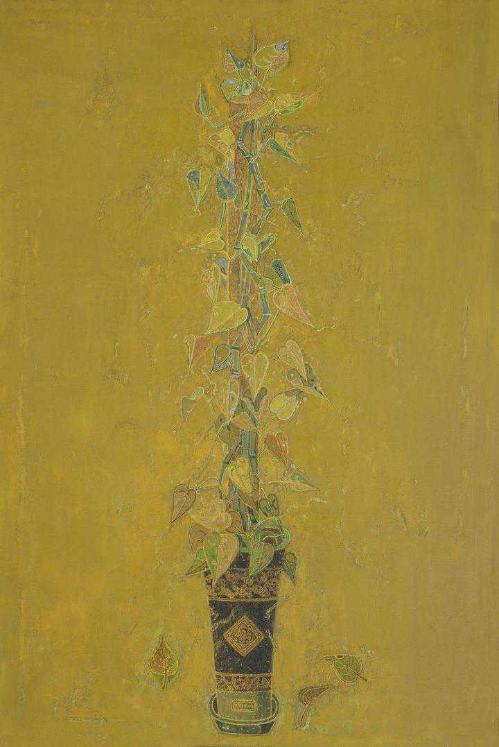 戴家峰绿萝盆景布面油画120X80cm2021年